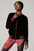 Lounge in luxury. Our silky smooth velvet fabric adds a little glamour to your everyday. Ideal for running around town or relaxing at home.  Get from your workout to where you need to be in style. The classic cool bomber cut meets ultra-plush velvet for a comfy street-ready look.