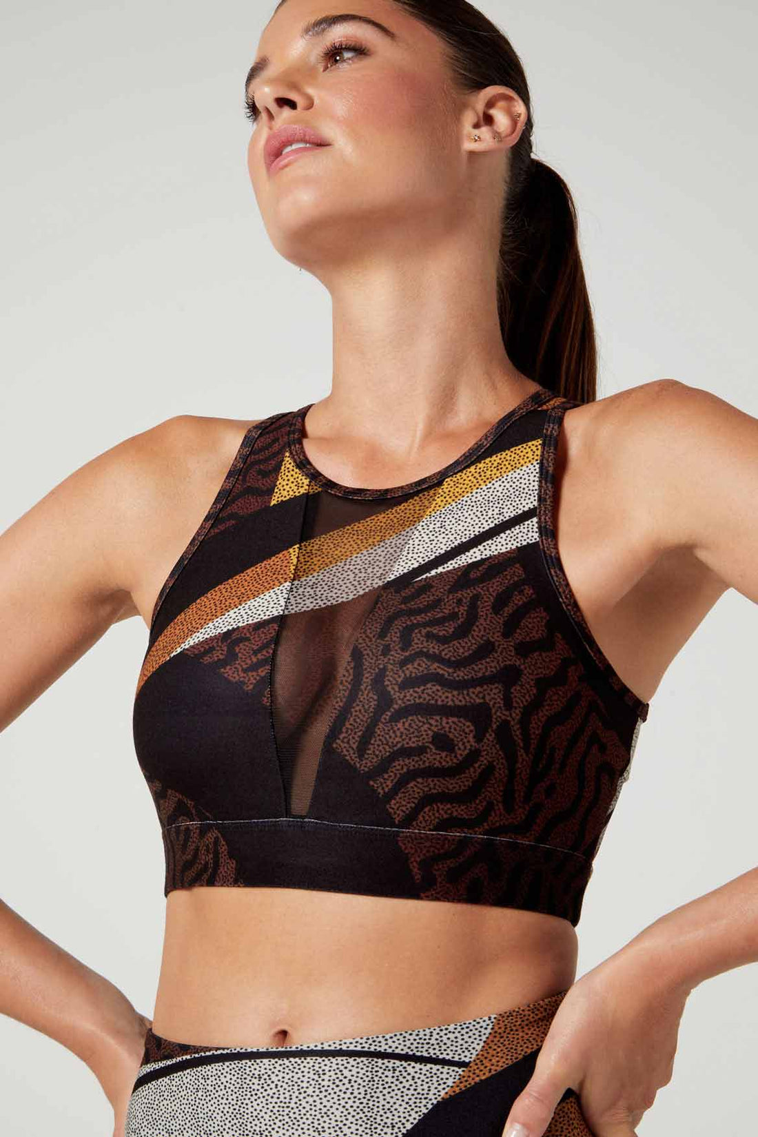 The Emma Bra is a versatile addition to any look. Mesh paneling provides a sultry peekaboo effect while removable pads offer extra support. Moisture wicking fabric keeps you cool while you knock out your to-do list or dance the night away.