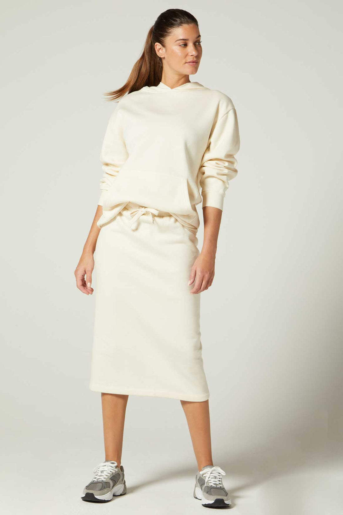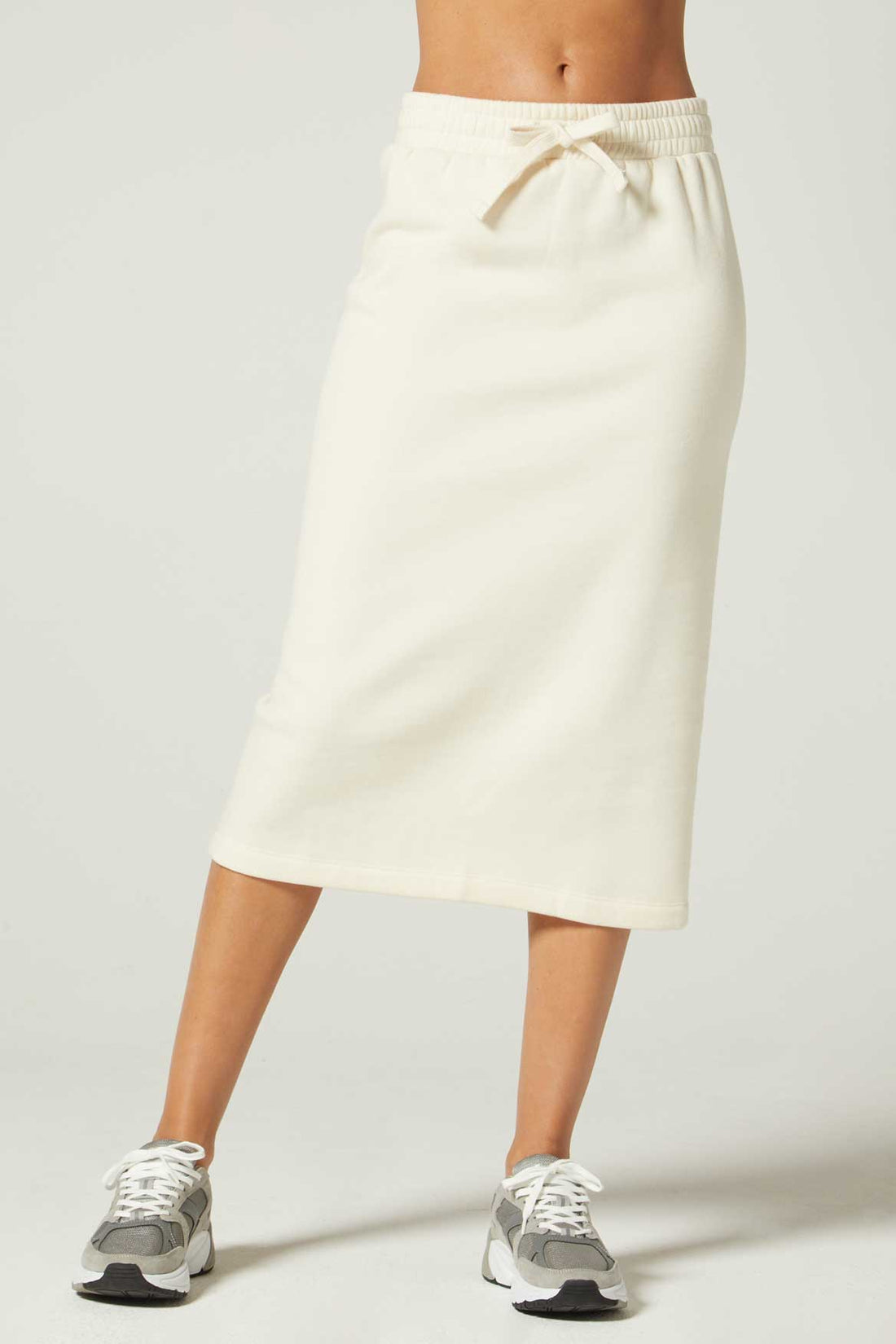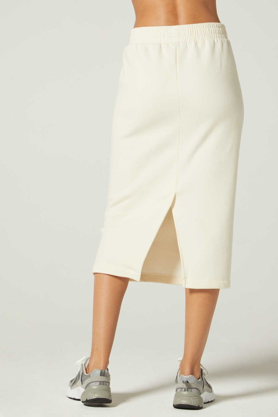 Feel cozy and flirty with our Krystal Skirt. Pair with a matching hoodie for maximum comfort in this high waisted pencil-shaped skirt with a peekaboo side-cut in the back.